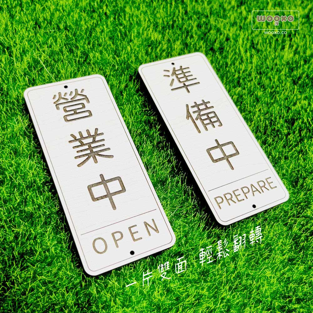 一面「營業中 OPEN」另一面「準備中 PREPARE」